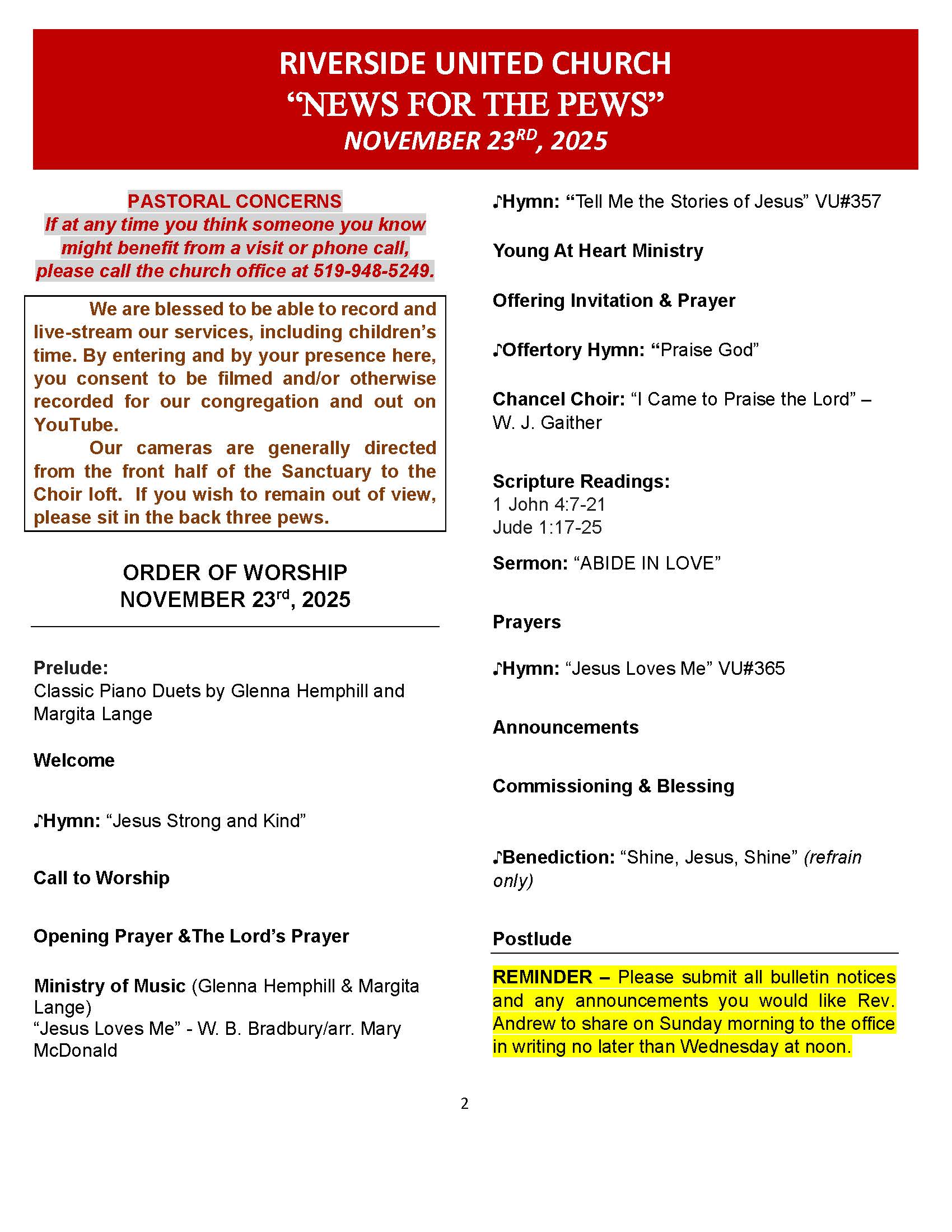Worship Bulletin Jan. 12, 2025 – Page 1Jan. 15, 2025 – Page 2Jan. 12, 2025 – Page 3Jan. 12, 2025 – Page 4 Jan. 19, 2025 – Page 1Jan. 19, 2025 – Page 2Jan. 19, 2025 – Page 3Jan. 19, 2025 – Page 4 Jan. 26, 2025 – Page 1Jan. 26, 2025 – Page 2Jan. 26, 2025 – Page 3Jan. 26, 2025 – Page 4 Feb. 2, 2025 – Page 1Feb. 2, 2025 – Page 2Feb. 2, 2025 – Page 3Feb. 2, 2025 – Page 4Feb. 2, 2025 – Page 5 Feb. 9, 2025 – Page 1Feb. 9, 2025 – Page 2Feb. 9, 2025 – Page 3Feb. 9, 2025 – Page 4Feb. 9, 2025 – Page 5 Feb. 16, 2025 – Page 1Feb. 16, 2025 – Page 2Feb. 16, 2025 – Page 3Feb. 16, 2025 – Page 4 Feb. 23, 2025 – Page 1Feb. 23, 2025 – Page 2Feb. 23, 2025 – Page 3Feb. 23, 2025 – Page 4Feb. 23, 2025 – Page 5Feb. 23, 2025 – Page 6 Mar. 2, 2025 – Page 1Mar. 2, 2025 – Page 2Mar. 2, 2025 – Page 3Mar. 2, 2025 – Page 4Mar. 2, 2025 – Page 5Mar. 2, 2025 – Page 6 Mar. 9, 2025 – Page 1Mar. 9, 2025 – Page 2Mar. 9, 2025 – Page 3Mar. 9, 2025 – Page 4Mar. 9, 2025 – Page 5Mar. 9, 2025 – Page 6 Mar. 16, 2025 – Page 1Mar. 16, 2025 – Page 2Mar. 16, 2025 – Page 3Mar. 16, 2025 – Page 4Mar. 16, 2025 – Page 5Mar. 16, 2025 – Page 6 Bulletin Mar. 23, 2025 – Page 1Mar. 23, 2025 – Page 2Mar. 23, 2025 – Page 3Mar. 23, 2025 – Page 4Mar. 23, 2025 – Page 5 Mar. 30, 2025 – Page 1Mar. 30, 2025 – Page 2Mar. 30, 2025 – Page 3Mar. 30, 2025 – Page 4Mar. 30, 2025 – Page 5 Mar. 30, 2025 – Page 6 Apr. 6, 2025 – Page 1Apr. 6, 2025 – Page 2Apr. 6, 2025 – Page 3Apr. 6, 2025 – Page 4Apr. 6, 2025 – Page 5 Apr. 6, 2025 – Page 6 Apr. 6, 2025 – Page 1Apr. 6, 2025 – Page 2Apr. 6, 2025 – Page 3Apr. 6, 2025 – Page 4Apr. 6, 2025 – Page 5 Apr. 6, 2025 – Page 6 Apr. 13, 2025 – Page 1Apr. 13, 2025 – Page 2Apr. 13, 2025 – Page 3Apr. 13, 2025 – Page 4Apr. 13, 2025 – Page 5 Apr. 13, 2025 – Page 6Apr. 13, 2025 – Page 7 Apr. 20, 2025 – Page 1Apr. 20, 2025 – Page 2Apr. 20, 2025 – Page 3Apr. 20, 2025 – Page 4Apr. 20, 2025 – Page 5 Apr. 20, 2025 – Page 6 Apr. 27, 2025 – Page 1Apr. 27, 2025 – Page 2Apr. 27, 2025 – Page 3Apr. 27, 2025 – Page 4Apr. 27, 2025 – Page 5 Apr. 27, 2025 – Page 6Apr. 27, 2025 – Page 7 May 4, 2025 – Page 1May 4, 2025 – Page 2May 4, 2025 – Page 3May 4, 2025 – Page 4May 4, 2025 – Page 5 May 4, 2025 – Page 6 Bulletin May 11, 2025 – Page 1May 11, 2025 – Page 2May 11, 2025 – Page 3May 11, 2025 – Page 4May 11, 2025 – Page 5May 11, 2025 – Page 6May 11, 2025 – Page 7 May 18, 2025 – Page 1May 18, 2025 – Page 2May 18, 2025 – Page 3May 18, 2025 – Page 4May 18, 2025 – Page 5May 18, 2025 – Page 6May 18, 2025 – Page 7 May 25, 2025 – Page 1May 25, 2025 – Page 2May 25, 2025 – Page 3May 25, 2025 – Page 4May 25, 2025 – Page 5May 25, 2025 – Page 6May 25, 2025 – Page 7 June 1, 2025 – Page 1June 1, 2025 – Page 2June 1, 2025 – Page 3June 1, 2025 – Page 4June 1, 2025 – Page 5 June 22, 2025 – Page 1June 22, 2025 – Page 2June 22, 2025 – Page 3June 22, 2025 – Page 4June 22, 2025 – Page 5 June 29, 2025 – Page 1June 29, 2025 – Page 2June 29, 2025 – Page 3June 29, 2025 – Page 4June 29, 2025 – Page 5June 29, 2025 – Page 6 July 6, 2025 – Page 1July 6, 2025 – Page 2July 6, 2025 – Page 3July 6, 2025 – Page 4July 6, 2025 – Page 5 July 13, 2025 – Page 1July 13, 2025 – Page 2July 13 2025 – Page 3July 13, 2025 – Page 4July 13, 2025 – Page 5 July 13, 2025 – Page 1July 13, 2025 – Page 2July 13 2025 – Page 3July 13, 2025 – Page 4July 13, 2025 – Page 5 Bulletin Oct. 5, 2025 – Page 1 Oct. 5, 2025 – Page 2Oct. 5, 2025 – Page 3Oct. 5, 2025 – Page 4Oct. 5, 2025 – Page 5Oct. 5, 2025 – Page 6Oct. 5, 2025 – Page 7 Nov. 2, 2025 – Page 1 Nov. 2, 2025 – Page 2Nov. 2, 2025 – Page 3Nov. 2, 2025 – Page 4Nov. 2, 2025 – Page 5 Nov. 9, 2025 – Page 1 Nov. 9, 2025 – Page 2Nov. 9, 2025 – Page 3Nov. 9, 2025 – Page 4Nov. 9, 2025 – Page 5Nov. 9, 2025 – Page 6Nov. 9, 2025 – Page 7 Nov. 16, 2025 – Page 1 Nov. 16, 2025 – Page 2Nov. 16, 2025 – Page 3Nov. 16, 2025 – Page 4Nov. 16, 2025 – Page 5Nov. 16, 2025 – Page 6 Nov. 23, 2025 – Page 1 Nov. 23, 2025 – Page 2Nov. 23, 2025 – Page 3Nov. 23, 2025 – Page 4Nov. 23, 2025 – Page 5Nov. 23, 2025 – Page 6 Nov. 30, 2025 – Page 1 Nov. 30, 2025 – Page 2Nov. 30, 2025 – Page 3Nov. 30, 2025 – Page 4Nov. 30, 2025 – Page 5Nov. 30, 2025 – Page 6